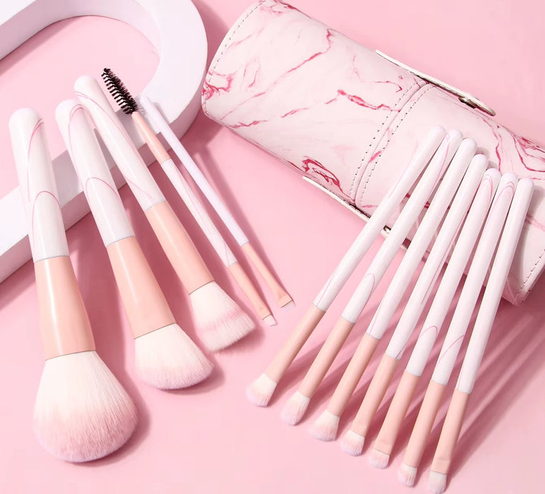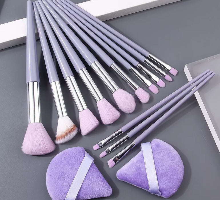 This portable makeup kit includes 14 soft brushes, 2 wet/dry makeup eggs, and 2 triangle powder puffs for smooth blending and precise setting. Works with liquids, creams, and powders—perfect for everyday or travel.