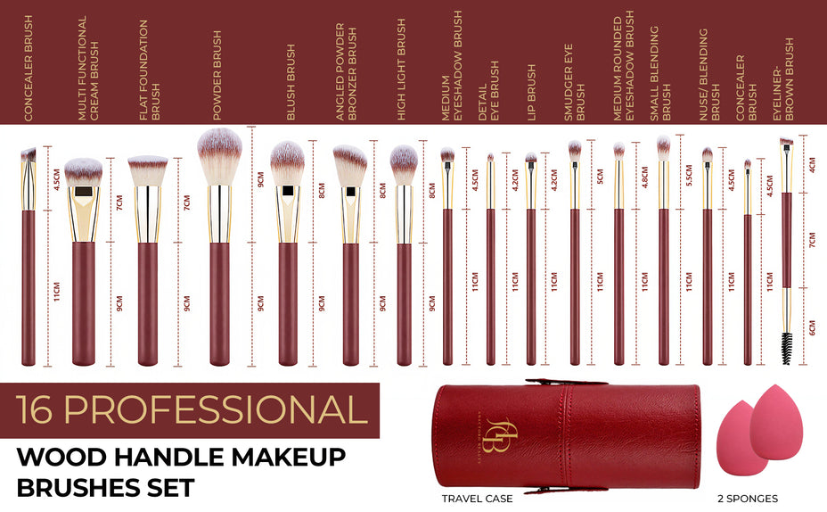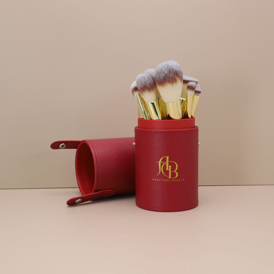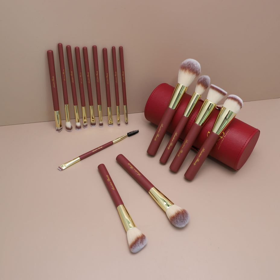 Each brush is crafted with matte red wood handles and elegant gold ferrules, offering both style and durability. Whether you’re blending foundation, applying eyeshadow, or adding the perfect contour, these brushes give you precision and control.