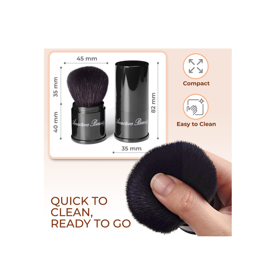 Our Anactoro Kabuki Makeup Brush is crafted with silky-soft, dense bristles that help you achieve a natural, airbrushed look—no streaks, no fuss! A sleek, compact design with a protective cover ensures your brush stays clean and ready for flawless application anywhere—perfect for purses and travel bags.