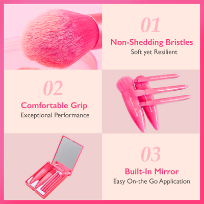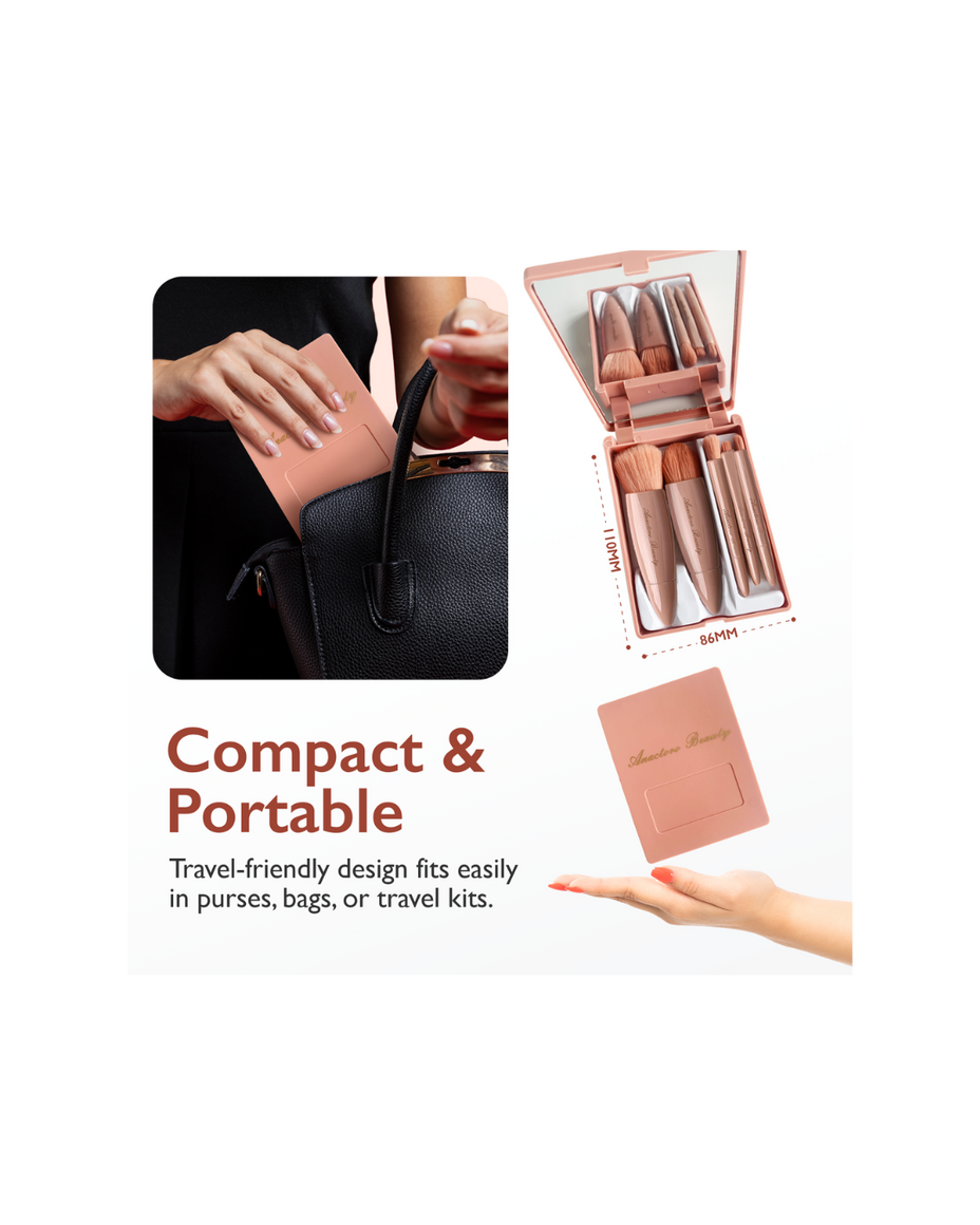 Designed for on-the-go beauty, our mini brushes kit comes in a sleek and portable case that easily fits into your purse or travel bag, so you can touch up your makeup wherever you go.